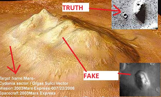Σε άλλη φωτογραφία που δόθηκε στη δημοσιότητα, οι “UFOλόγοι” είδαν μια πυραμίδα. Το μέγεθος της πυραμίδας φαίνεται να αντιστοιχεί στο μέγεθος ενός αυτοκινήτου. Η NASA ανακοίνωσε πως επρόκειτο απλά για έναν τυχαίο βράχο.