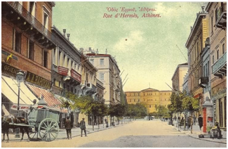 Το τετραώροφο νεοκλασικό κτίριο επί της οδού Ερμού 70, οικοδομήθηκε στο γύρισμα του 19ου προς τον 20ό αιώνα και, όπως προκύπτει από τα μεγάλα ανοίγματα στις όψεις και την ύπαρξη παταριού, το ισόγειο προοριζόταν εξ αρχής για εμπορικές χρήσεις. Πράγματι, κατά καιρούς στέγαζε διάφορα εμπορικά καταστήματα (παλαιότερα ειδών ταξιδίου, οικιακών σκευών κ.τ.λ., αργότερα υφασμάτων, ενδυμάτων, υποδημάτων κ.ά.), ενώ ορισμένα εργαστήρια στεγάστηκαν και στους δύο πρώτους ορόφους (κυρίως ραφής ειδών ένδυσης).