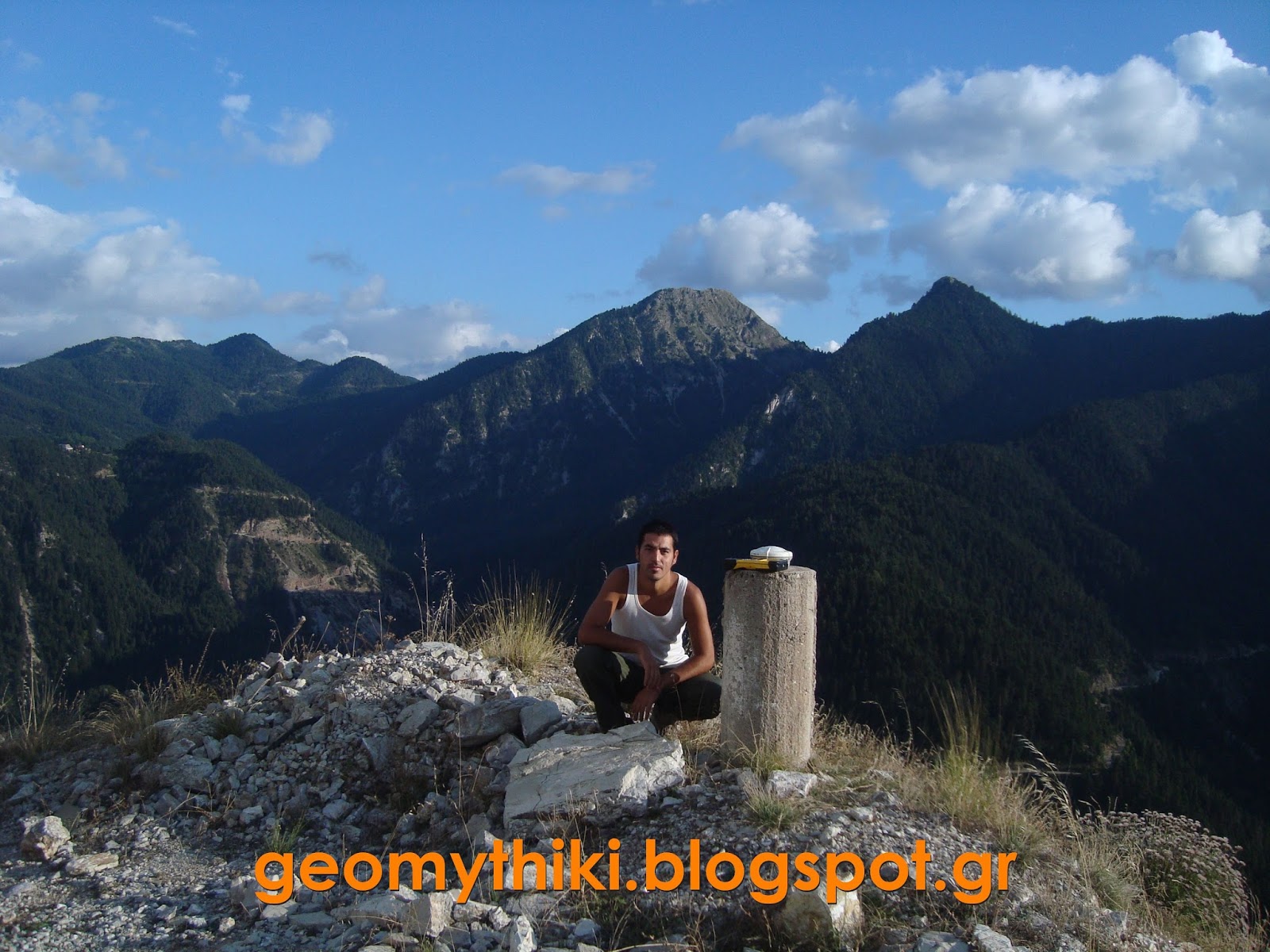 Βάθρο Γ.Υ.Σ. σε κορυφή βουνού όπου έχει καταστραφεί.