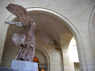 2) Η Νίκη της Σαμοθράκης (200 π.Χ.) – Το πιο αξιοθαύμαστο ίσως καλλιτέχνημα της αρχαίας ελληνικής γλυπτικής τέχνης, που παριστάνει τη φτερωτή θεά της νίκης.Η Νίκη* της Σαμοθράκης είναι ένα ελληνιστικό* γλυπτό του 2ου π.Χ. αιώνα σκαλισμένο σε παριανό μάρμαρο, που παριστάνει τη θεά Νίκη.Δυστυχώς, από το άγαλμα λείπει το κεφάλι της. Ανακαλύφθηκε το 1863 από τον Γάλλο πρόξενο Σαμπουαζώ2. Το άγαλμα έφτασε στο Λούβρο στις 11 Μαϊου του 1864 και δύο χρόνια μετά εκτέθηκε για πρώτη φορά μετά τις απαραίτητες εργασίες – χωρίς όμως ακόμα να μπορούν να εκθέσουν το επάνω μέρος τους κορμού και τα φτερά.