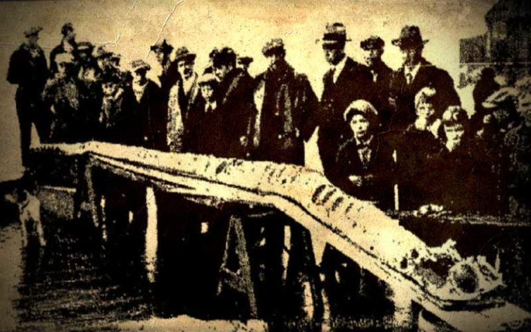 Οι αλιείς των νησιών αυτών αφηγούνταν ότι είδαν ένα τεράστιο θαλάσσιο τέρας, το οποίο έμοιαζε με ένα πρωτοφανών διαστάσεων χέλι. Το εξωπραγματικό αυτό πλάσμα είχε κεφάλι, που έμοιαζε με κεφαλή θαλασσίου λέοντος και έφερε δυο πελώρια κέρατα πίσω από τα αυτιά του.