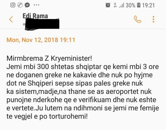 Πηγές αναφέρουν ότι λόγω του μπλοκαρίσματος δημιουργήθηκε εκνευρισμός στους Αλβανούς που κάθονται σε ουρά ενός χιλιομέτρου και ακολούθησαν μηνύματα προς τον πρωθυπουργό Έντι Ράμα να επιληφθεί προσωπικά το θέμα, αναφέρει το echedoros