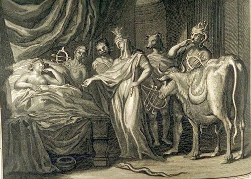 Πριν από τη γέννησή της, ο πατέρας της είχε δώσει εντολή να θανατωθεί το βρέφος, σε περίπτωση που θα ήταν κορίτσι, ωστόσο η μητέρα της την έσωσε και τη μεγάλωσε ως αγόρι. Όταν έφτασε στην εφηβεία, το κορίτσι επρόκειτο να παντρευτεί με κοσμιότητα και ευπρέπεια κάποια με την οποία ήταν ήδη ερωτευμένη. Το πρόβλημα ήταν πως εκείνη και η νύφη της ήταν και οι δύο γυναίκες. Η σωτηρία έρχεται από την Ίσιδα, μια θεότητα αιγυπτιακής προέλευσης, γνωστή και για τις μαγικές ικανότητες, η οποία τη μεταμορφώνει σε άντρα μετά από την προσευχή της μητέρας, της Τελεθούσας….
