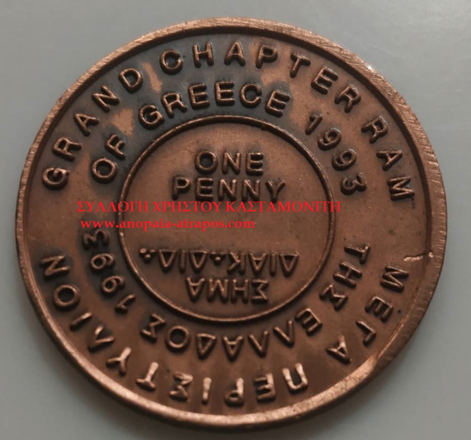 Το 1976 ορισμένοι Έλληνες ελευθεροτέκτονες αποφάσισαν να εισαγάγουν τον τύπο της Υόρκης (York Rite), ενώ έως τότε υπήρχε μόνον ο Σκωτικός Τύπος (Scottish Rite). Στις 27 Νοεμβρίου 1977 σε τελετή που έλαβε χώρα στην Αθήνα, εγκαθιδρύεται το “Μέγα Περιστύλιον της Βασιλικής Αψίδος της Ελλάδος”. Οι ενέργειες αυτές έλαβαν χώρα από τα τρία περιστύλια “Ολυμπία” αρ. 29, “Αθηνά” αρ. 30 και “Αιγεύς” αρ. 32, υπό την αιγίδα του Υπάτου Μεγάλου Περιστυλίου της Γερμανίας. Το τόκεν εκδοθηκε και είναι από τελετή σαν αυτή και φαίνεται να έχει ιδιαίτερη αξία . Παρατηρουμε οτι η αξια ειναι σε ΠΕΝΝΕΣ. Η Συγκεκριμενη μαρκα ( τοκεν) ειναι του 1993. Ποιος τους εδωσε το δικαιωμα να εκδιδουν χρημα στην Ελληνικη Επικρατεια ?