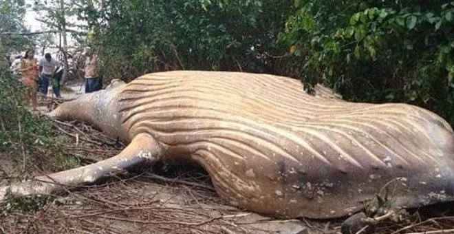Το κήτος εντοπίστηκε την περασμένη Παρασκευή από ντόπιους, που είδαν όρνια να πετάνε πάνω από τη νήσο Μαρέχο κοντά στο δέλτα του Αμαζονίου.