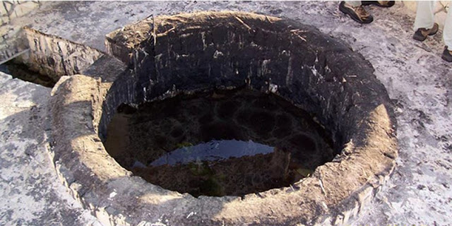 Στο μέρος μάλιστα αυτό υπάρχει μικρό αβαθές φρέαρ το οποίο οι ντόπιοι αποκαλούν «πηγάδι του Ηροδότου». Φαίνεται ότι ολόκληρη η περιφέρεια είναι πετρελαιούχος, διότι πίσσα και άσφαλτος (που είναι προϊόντα του πετρελαίου) ανευρίσκονται στον πυθμένα του παρακείμενου κόλπου, πολλές φορές δε οι αλιείς, όταν η θάλασσα είναι γαλήνια παρατηρούν κηλίδες πετρελαίου επί της επιφανείας της θαλάσσης και αισθάνονται την χαρακτηριστική οσμή του πετρελαίου.