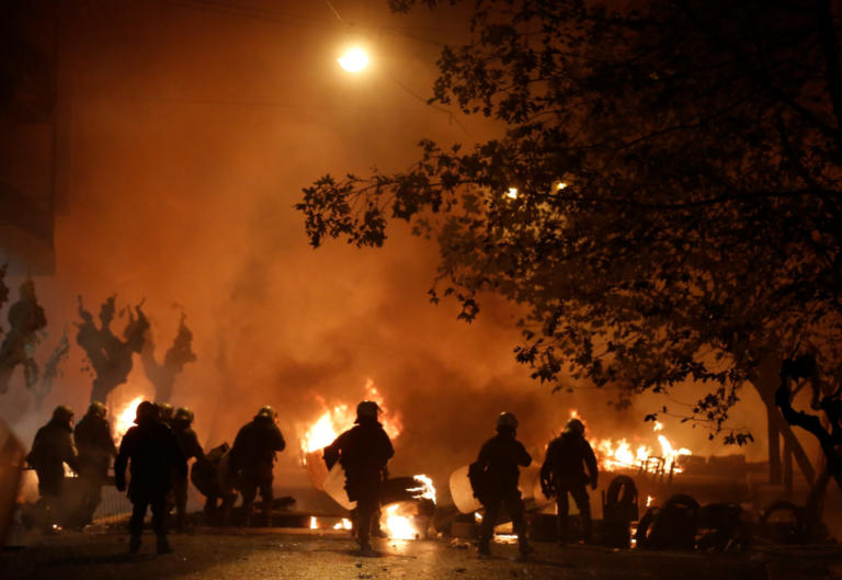 Η αστυνομία έκανε 27 προσαγωγές. Την “σκυτάλη” πήραν οι αντιεξουσιαστές στα Εξάρχεια και κοντά στο πολυτεχνείο, με την νύχτα να έχει γίνει ξανά μέρα από τις πολλές μολότοφ, και την ατμόσφαιρα αποπνικτική από τα χημικά.