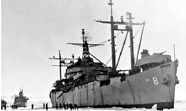 USS Mount Olympus, ένα από τα πλοία της αποστολής του Ναυάρχου Μπερντ, αγκυροβολημένο στην Ανταρκτική, το 194